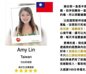不管妳是單身還是已婚, 愛情都是生命不可或缺的元素. 如何吸引來或是把枕邊人打造成理想伴侶, 透過這門線上課程, 我已經成功協助很多單身及已婚的人, 在100天內創造出理想伴侶, 只要願意按照課程一步一步前進, 下一個幸福即將是妳。